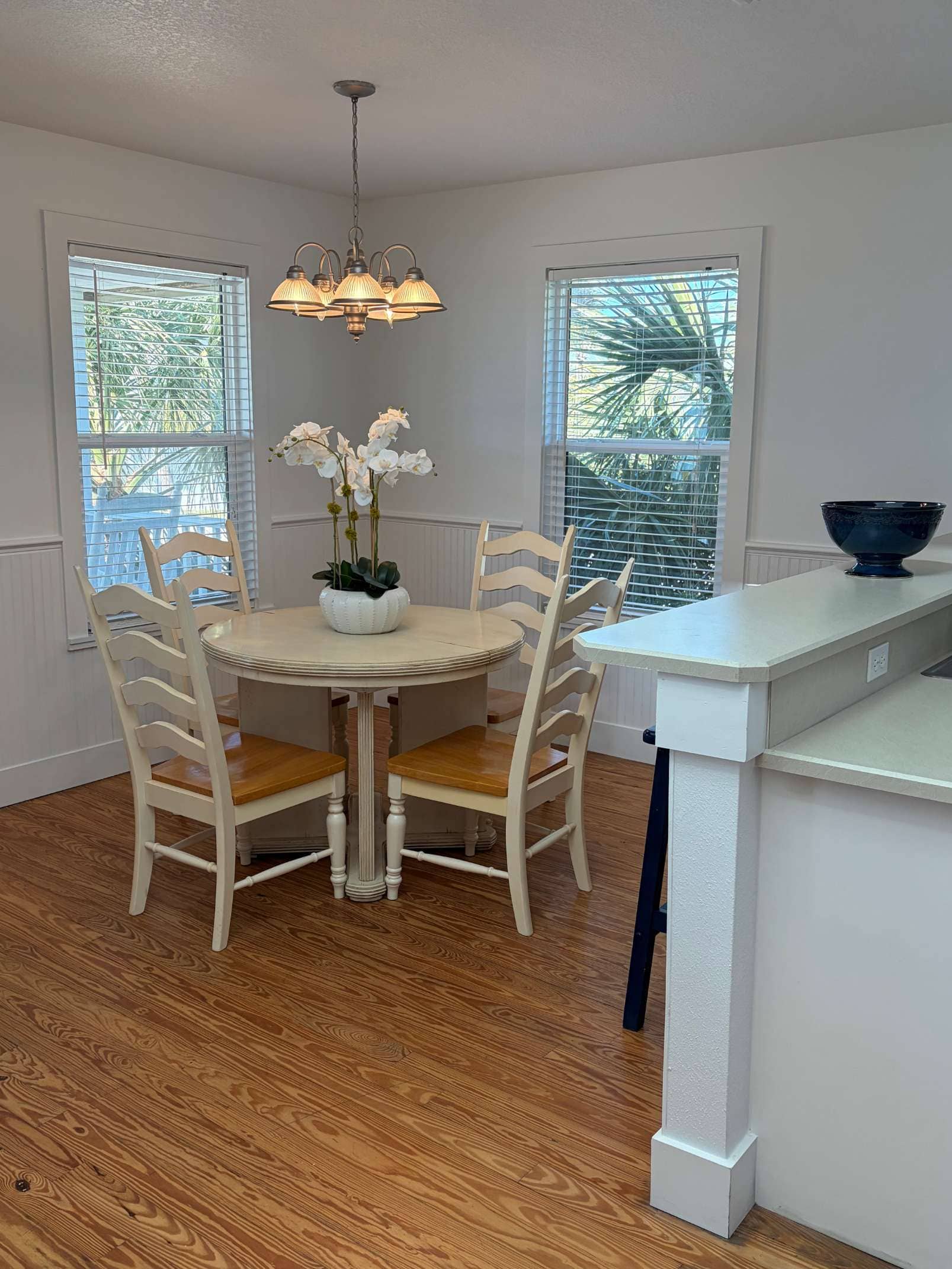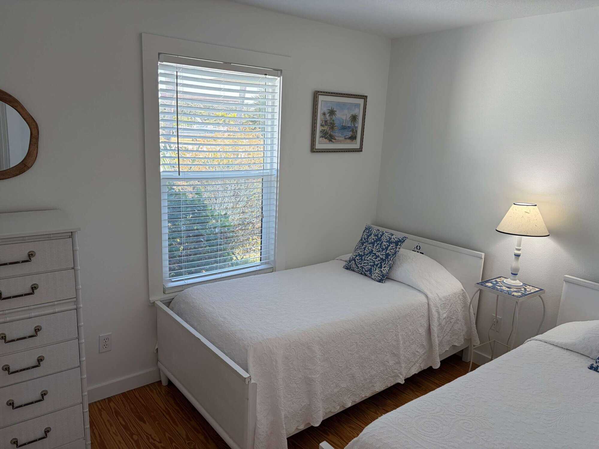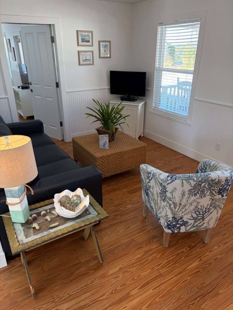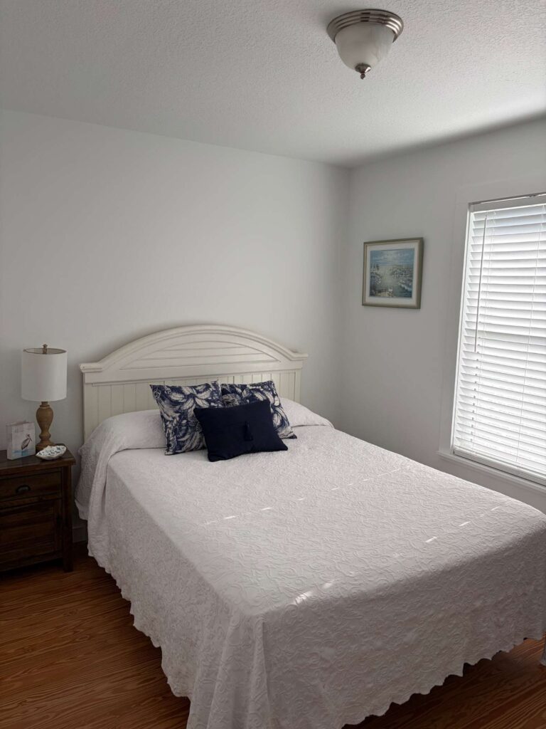 With four bedrooms, two bathrooms, and two full kitchens in total, this duplex cottage is designed for easy group living. Each side features its own fully equipped kitchen, two comfortable bedrooms, a stocked bathroom, and a wide covered porch with rocking chairs, so everyone gets their own space without sharing a coffee maker or the remote. With access to the heated pool, the shared dock, our on-site boat ramp, and the private beach walkover, the Duplex Cottage offers everything that makes Devil’s Elbow a favorite — just with more room for the people you love.